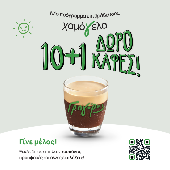 Ο Γρηγόρης παρουσιάζει το νέο πρόγραμμα επιβράβευσης Χαμόγελα και δίνει στους καταναλωτές έναν ακόμα λόγο να χαμογελούν κάθε φορά που απολαμβάνουν τον καφέ τους.