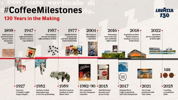 - 2025 – Η αυγή του Tablì: Η Lavazza παρουσιάζει το Tablì, μια επαναστατική νέα κατηγορία καφέ με 100% coffee tab και καινοτόμο μηχανή, επαναπροσδιορίζοντας την εμπειρία του καφέ.