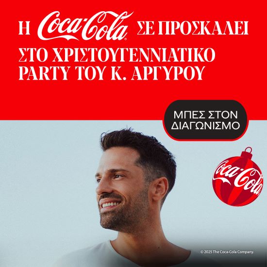 Η μαγεία ξεκινά με ένα ξεχωριστό χριστουγεννιάτικο party στην Αθήνα με τον Κωνσταντίνο Αργυρό, και η CocaCola προσφέρει ήδη σε 500 τυχερούς καταναλωτές την ευκαιρία να κερδίσουν από μια διπλή πρόσκληση. Ο διαγωνισμός βρίσκεται σε εξέλιξη στο CocaCola app και καλεί τους συμμετέχοντες να ζήσουν από κοντά μια ανεπανάληπτη γιορτινή εμπειρία γεμάτη μουσική, χαρά και χριστουγεννιάτικη ατμόσφαιρα.