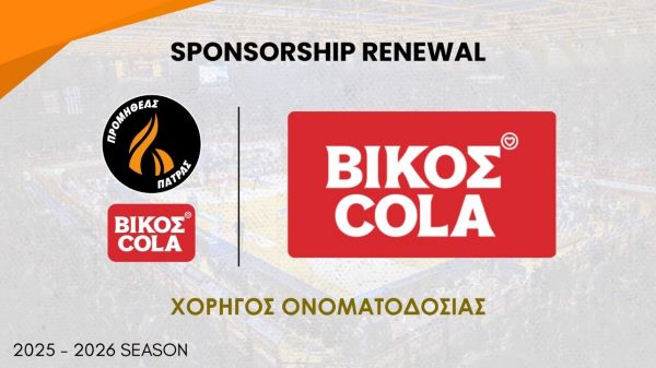 Η Βίκος Cola και η ΚΑΕ Προμηθέας Πάτρας ανακοινώνουν με χαρά την ανανέωση της χορηγικής τους συνεργασίας για δεύτερη συνεχόμενη χρονιά, παραμένοντας ο Μεγάλος και Ονομαστικός Χορηγός του συλλόγου επισφραγίζοντας τη δυναμική αυτή συνεργασία. Η σύμπραξη αυτή επιβεβαιώνει τη δέσμευση της Ηπειρωτικής Βιομηχανίας Εμφιαλώσεων για τη στήριξη του ελληνικού αθλητισμού και της τοπικής κοινωνίας.